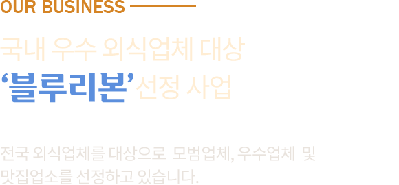 3,000여 개 이상의 매장을 창업 오픈·컨설팅한 노하우를 바탕으로 하여, 전국 외식업체 대상 모범업체· 우수업체· 맛집업소 선정